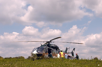 Okay, soooo...I never want for anything bad to happen to people. But bad things do happen. I just always hope these things happen when I'm working. When I got to work at 7 am the drive in felt as though today I would have a Trauma call it's been a while since my last one. The sun was shining the sky was blue and had nice puffy clouds...TODAY was the perfect day. At 1:40 pm a motorcycle accident went out in Brush Valley TWP. And they flew the dude...it seemed precautionary. So here are my photos. The sweet part was that around an Amish farm and the landing zone was on their property.
